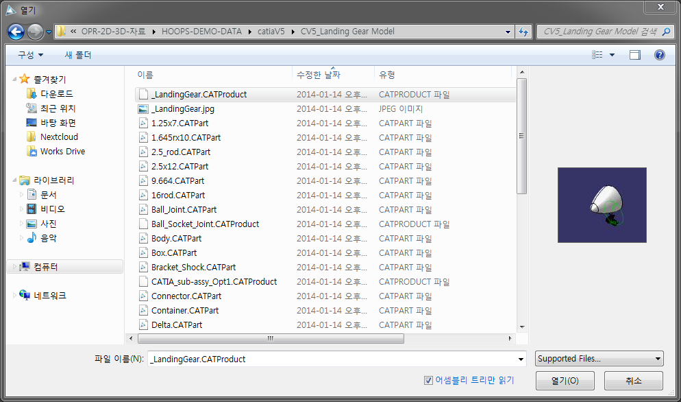 트리 구조만 읽어서 필요시 하위 어셈블리 불러오기 사용하여 편리하게 사용이 가능 합니다.