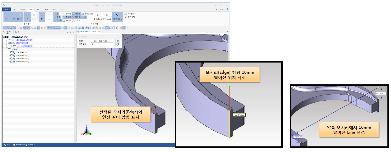 선택된 모서리(Edge) 방향으로 사용자 지정값 만큼 옵셋된 위치 지정하여 라인을 생성할 수 있습니다.
