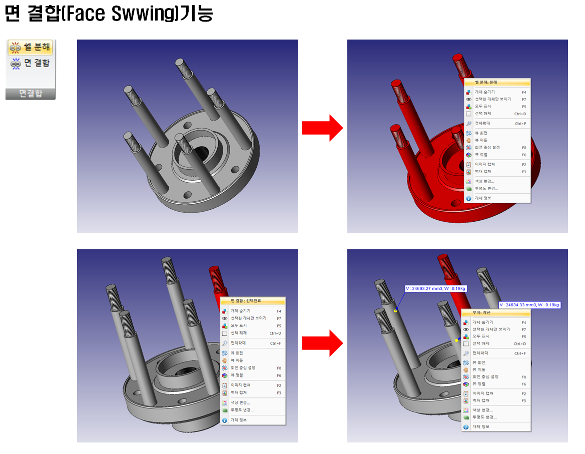 솔리드 재구성 기능 ** 면 결합(Face Sewing) 기능