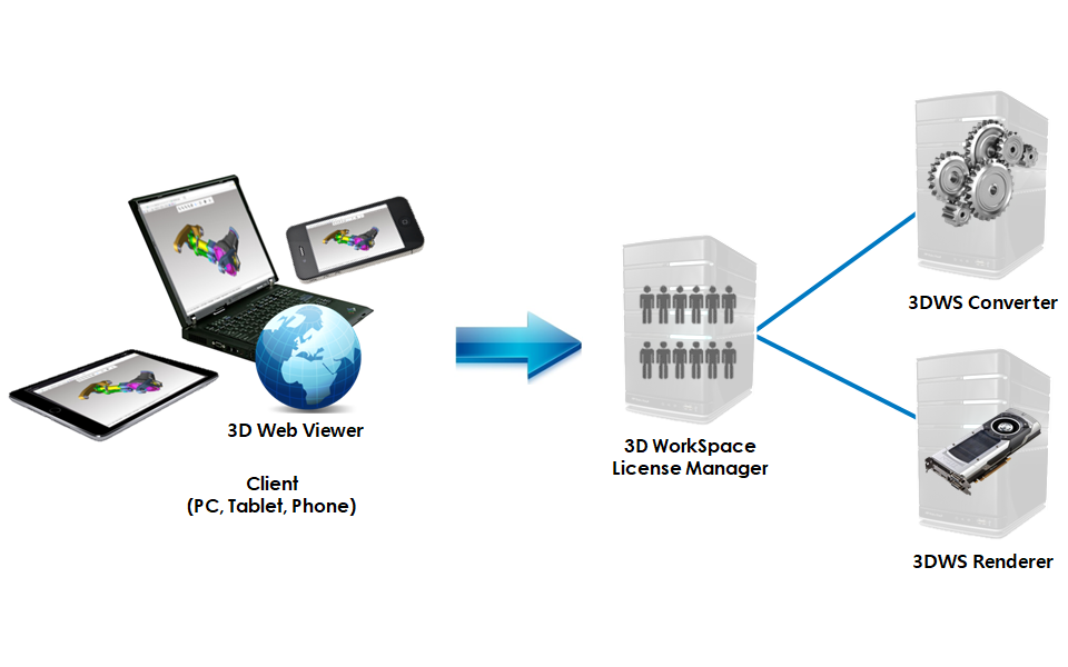3D WorkSapce는 2D/3D CAD 웹뷰어이며, 파일을 다운로드받지 않고, 설치도 필요 없는 클라우드 뷰어입니다! 3D WebSpace는 웹브라우저만 있으면 사용할 수 있으며, 사용을 위해 어떠한 설치도 필요가 없습니다. 사용자 기능의 버전업은 개별 설치 없이 서버의 버전업 만으로 적용되어 관리가 아주 편리한 솔루션입니다.